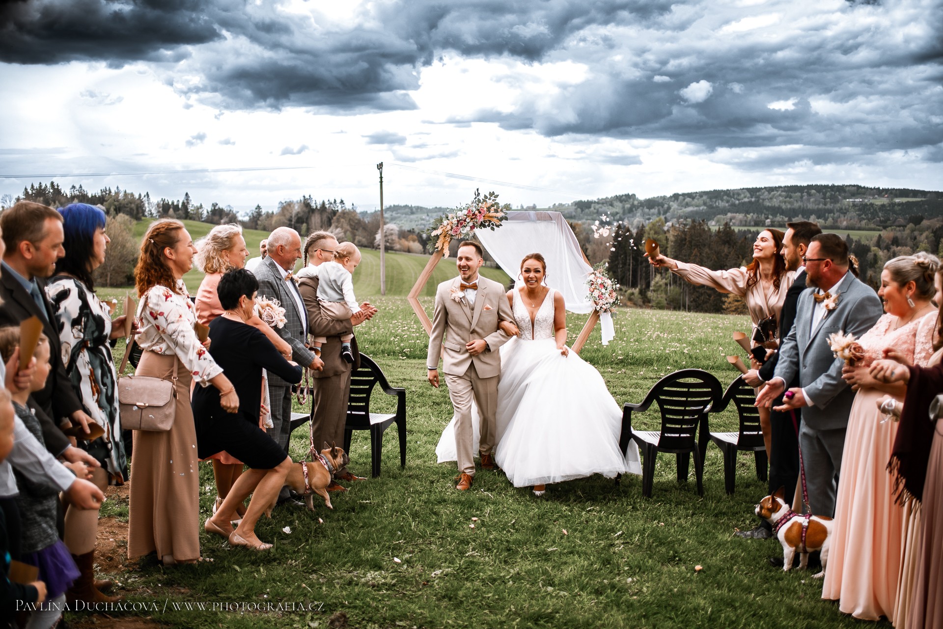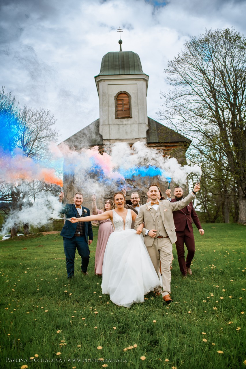 První letošní svatba a jak jinak než se supr lidmi! Počasí si s námi v celku hrálo, ale nás to vůbec nerozhodilo 🙂 Měli jsme vše, co si pravá veselka může jen přát. Sluníčko, mráčky, vítr, bezvětří i déšť 🙂 JOOOO .. pravda – nesněžilo 😀 Přání byla spousta a tak jsem se je snažila všechna splnit- co se fotodokumentace týče – jako ty dýmovnice byly boží 🙂 A ten dort – mňam , tak ten byl luxusní! Sranda byla o tom žádná. Tančilo se ,hrálo se a všichni se moc bavili! Koukněte sami, líbí ?